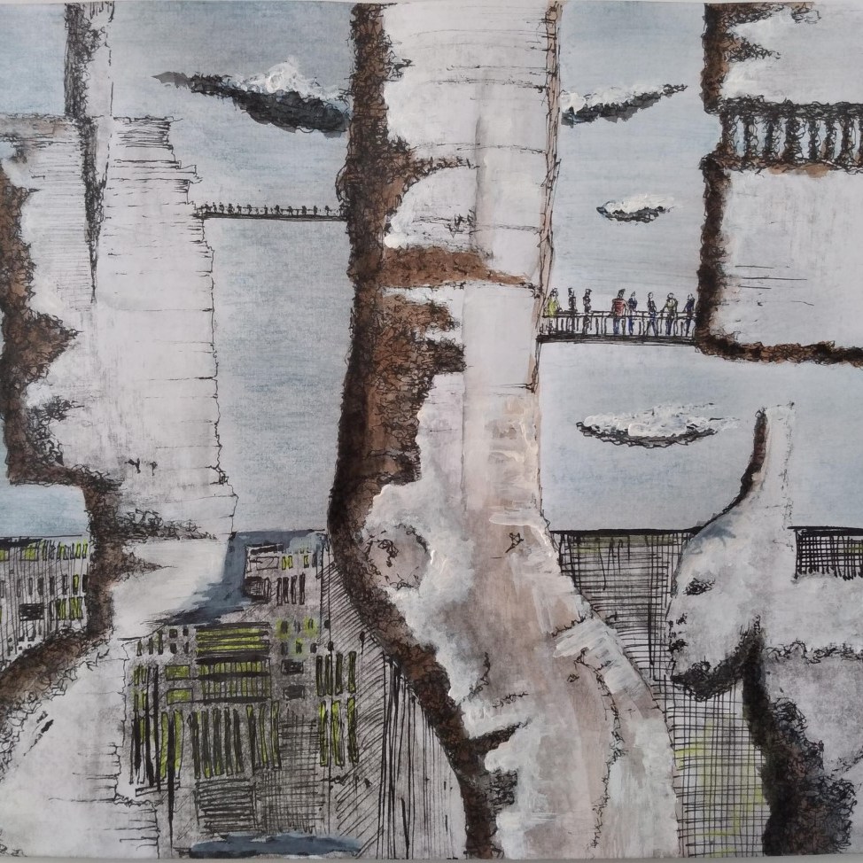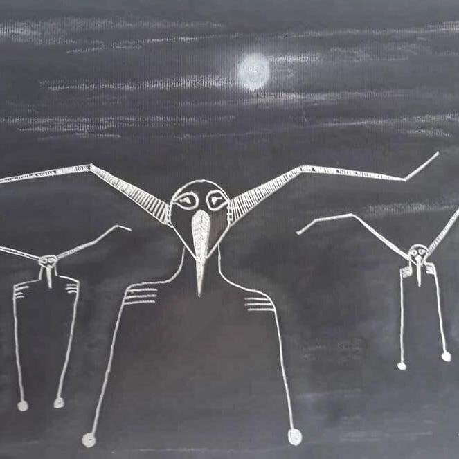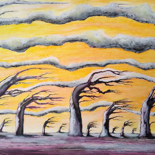 Sus pinceladas son certeras, la composición y la combinación de colores que logra, acompañan acertadamente estos ambientes surrealistas que evocan situaciones del fondo de su pensar, imágenes, que después de años de analizar, atrevidamente dibuja para todo aquel que se desafíe a ver, como él, “más allá de la mirada”